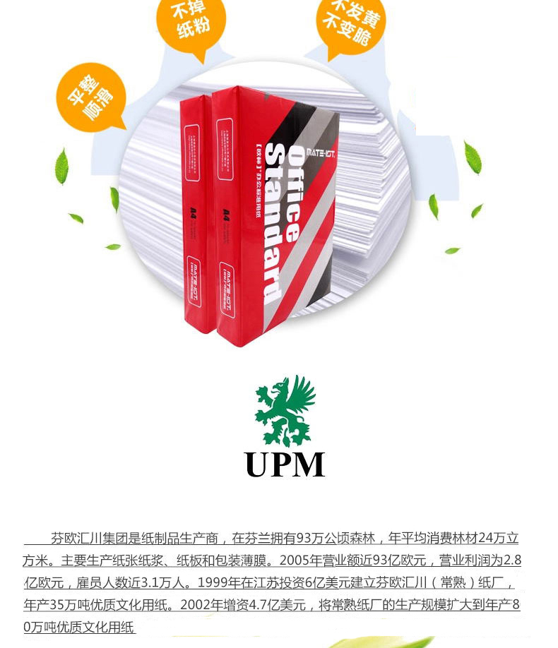 UPM黃欣樂 70克 A4 中白復(fù)印紙 500張/包 8包/箱